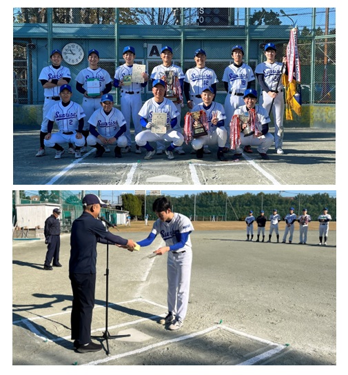 - サンライズは秋季市民大会一般男子1部決勝戦でジェントルマンと対戦し7対2で勝利し3度目の1部優勝を飾りました。最優秀選手には渡部選手が選出され森会長から表彰を受けました。